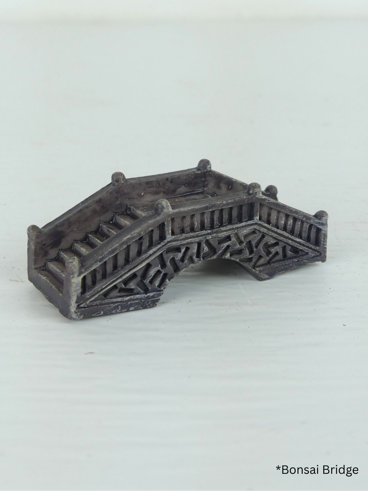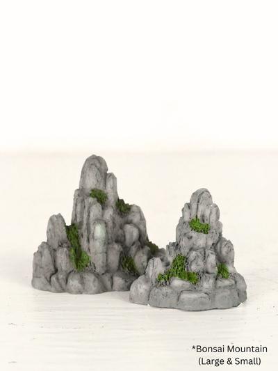 This set includes a mix of miniature huts, bridges, stone formations, and rustic architectural elements — all designed to help you build scenes that feel lived-in, magical, or beautifully serene. Whether you're enhancing a bonsai composition or crafting a terrarium village, these accessories make it easy to customise your display with creativity and flair.