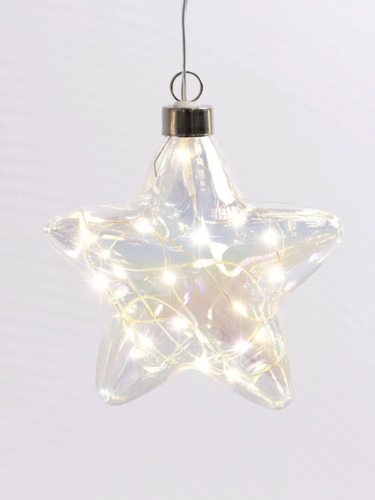 Bring a soft, magical glow to your home with the Pearl Tint Star Hanging Glass Light. Crafted from tinted glass and filled with delicate warm white LED seed lights, this beautiful star-shaped ornament shines with a gentle shimmer that feels perfect for the holiday season—or for adding ambience year-round