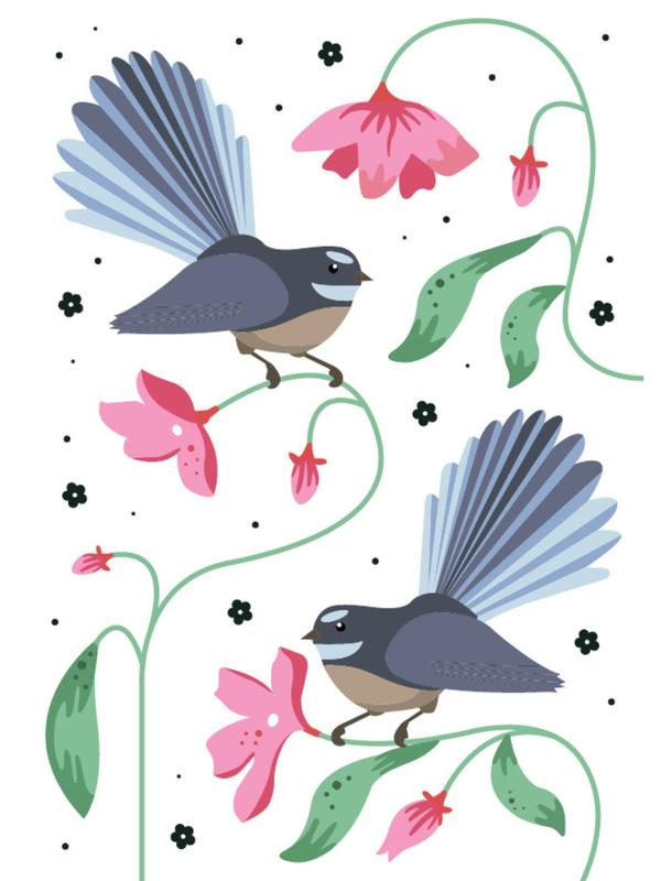 Celebrate any moment with our "Fantails" greeting card, featuring a charming design of these playful birds. Blank inside, it's perfect for sending your own message for any occasion.