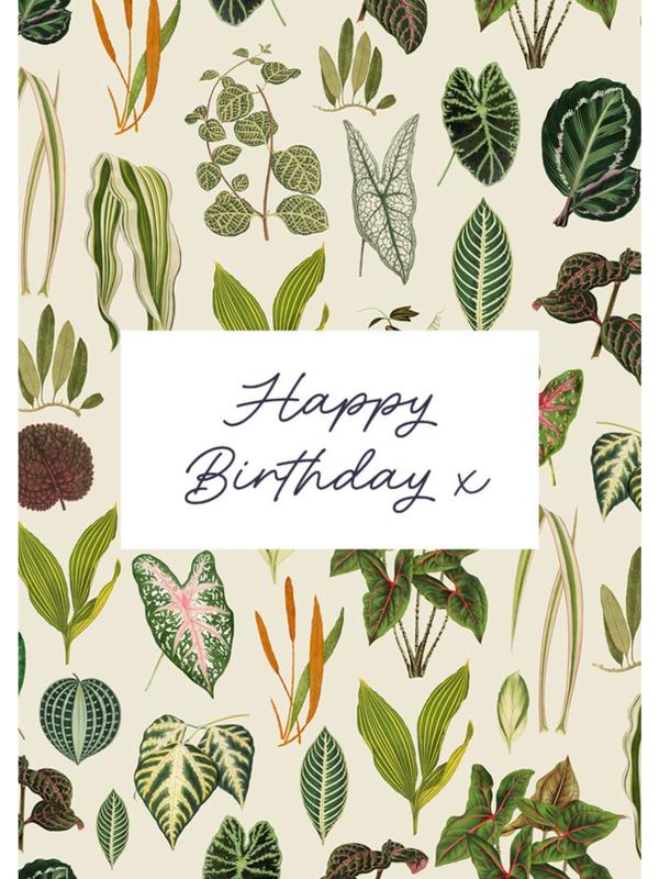 Send birthday cheer to plant lovers with our "Happy Birthday Houseplant Foliage" greeting card. Featuring a stylish design of lush indoor plants, it's the perfect way to celebrate their special day.