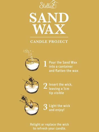 Create your own beautifully unique candles with this 500g Sand Wax Kit, thoughtfully packaged in a stylish presentation tube and complete with 20 wicks to get you started. This versatile candle wax has a soft, sand-like texture that lets you design candles your way, simply pour, place a wick, and light.