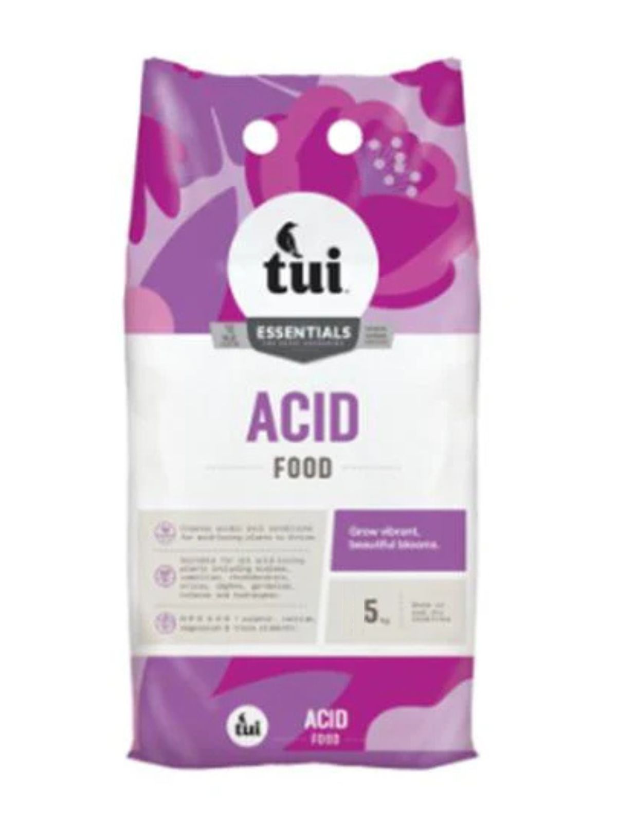 Whatever your bloom of choice, filling your piece of paradise with fragrant floral displays will bring joy on a daily basis. Tui Acid Food contains high levels of sulphur to increase soil acidity for your acid-loving plants to thrive. It is specially formulated with vital nutrients for healthy growth and trace elements to combat yellowing of leaves.