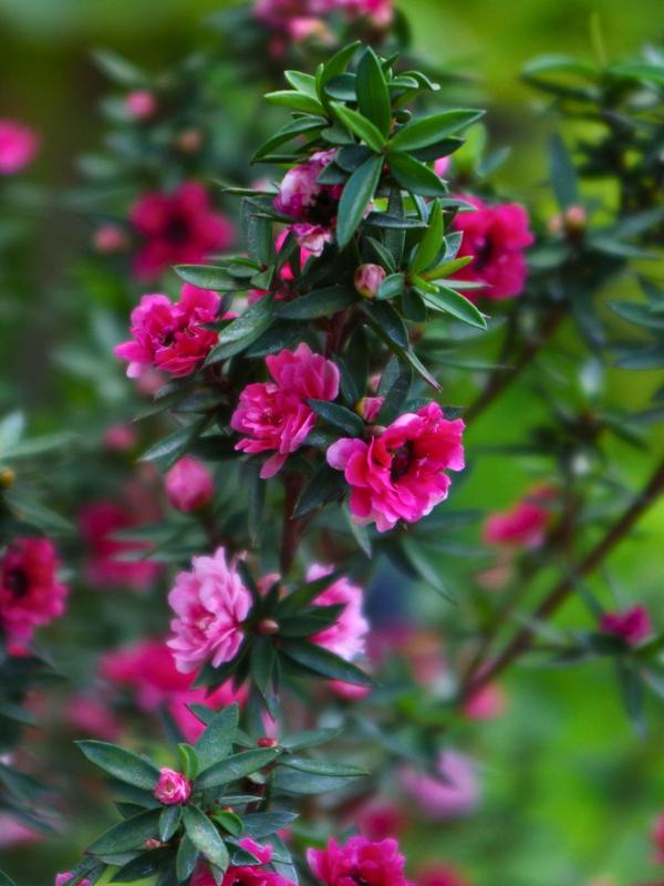 A cultivar of the native New Zealand Leptospermum or Manuka. Has dark, bronze-green foliage and double burgundy-red flowers appearing in late winter and through spring that attracts bees. Suitable for growing in most soil types, wet or dry. Tolerates exposed and coastal conditions, sun or semi-shade and frost-hardy. A medium sized evergreen shrub/tree.