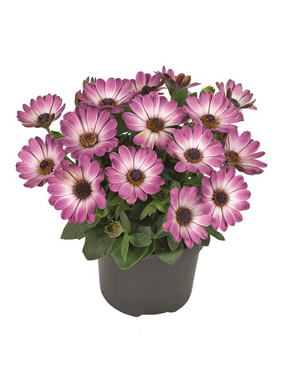 The large, daisy-like flowers are full of colour, with white inner petals changing to rose coloured on the outer petals. These are great for adding colour to your garden. Such a striking plant that the cut flowers often look artificial! Osteospermum adds instant cheer to spring, summer and fall gardens with the colourful bright orange, daisy-shaped flowers and lush green foliage. The plants can be grown in the garden or pots and containers. Before planting cultivate the soil to a depth of 20cm and mix in compost and a complete garden fertiliser. Use Oderings Potting & Basket Mix for containers.