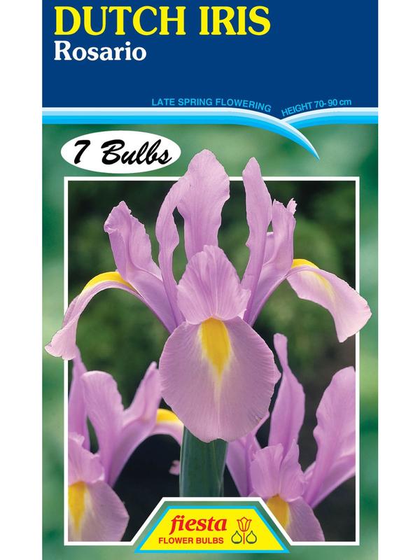 Dutch Iris Rosario, are a hardy fun-to-grow bulb that produces excellent flowers in late Spring. Great in the garden and in the vase, Dutch Iris are among the easiest bulbs to grow flowering just after the Daffodils and Tulips have finished.