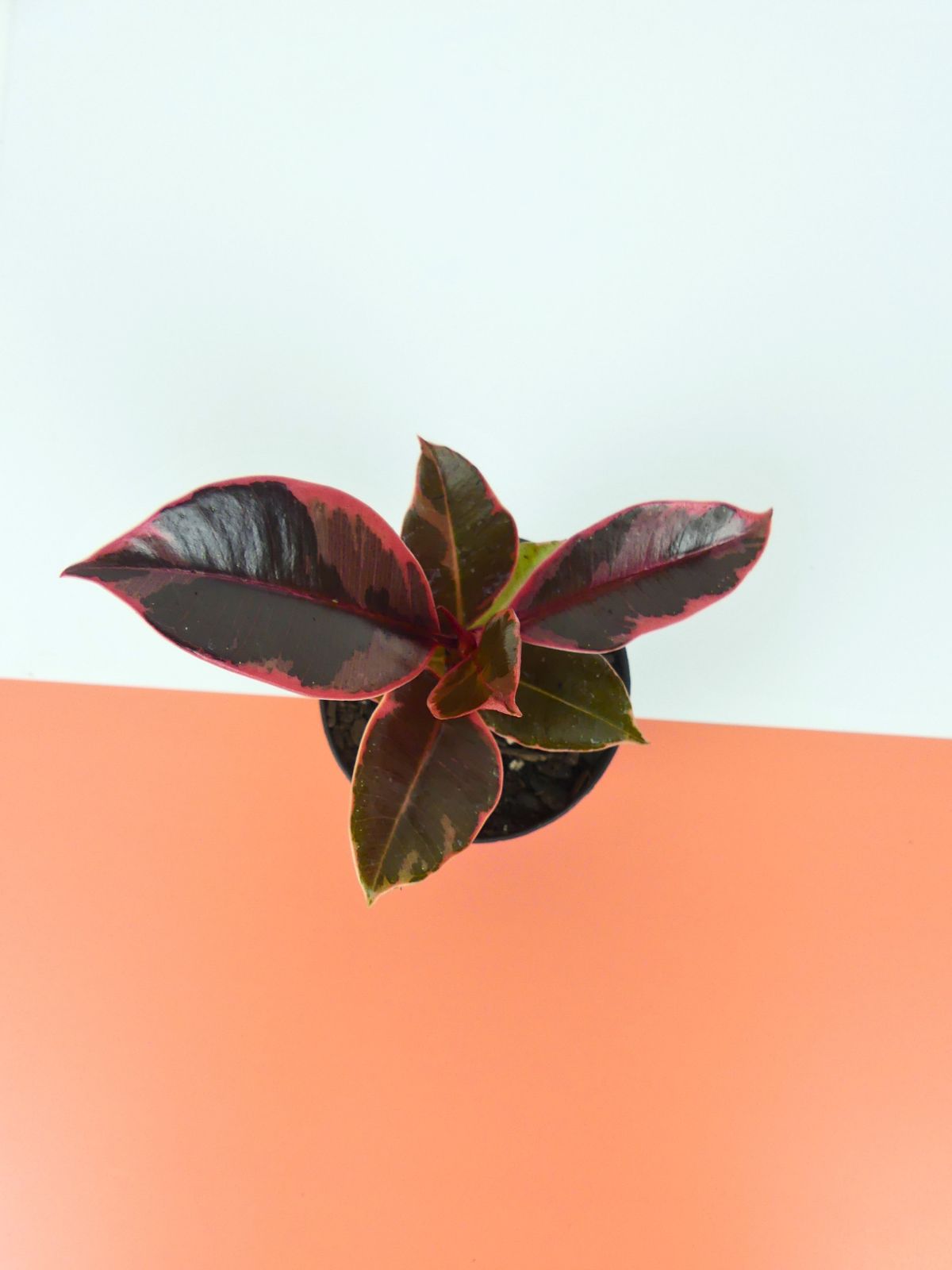 A glossy-leafed tree used as a foliage accent with oval shaped leaves. Ruby has pink-red, cream and green variegated coloured leaves. Thrives as an indoor plant, growing to 3m.