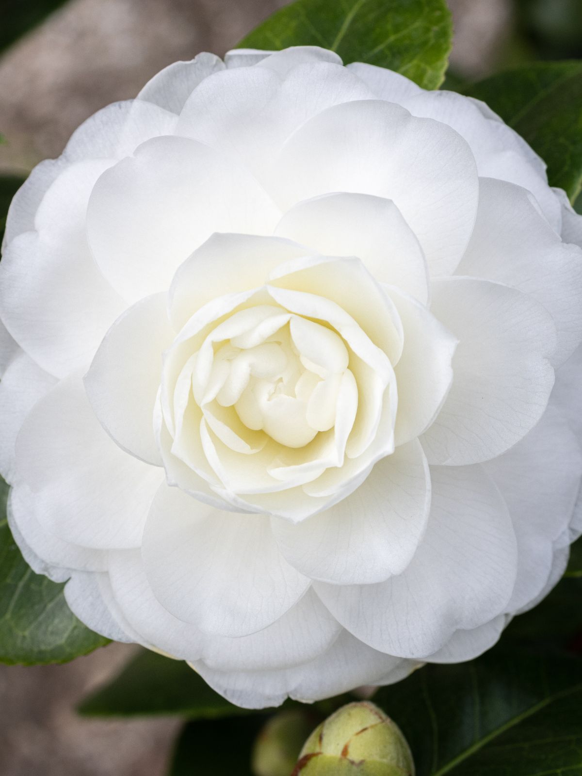 White Sasanqua. A very good performing Camellia that flowers from early autumn through to early winter. The blooms are double, white, with just a hint of blush pink on the outer edges.
