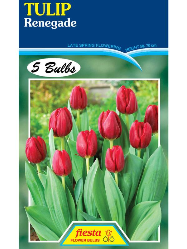 Renegade tulips give us a wonderful display in a bright shade of red. These tulips flower brilliantly on 45-55 cm stems making a great cut flower. They are easy to grow in a sunny well drained position, but prefer a southern cool spot in warmer districts.